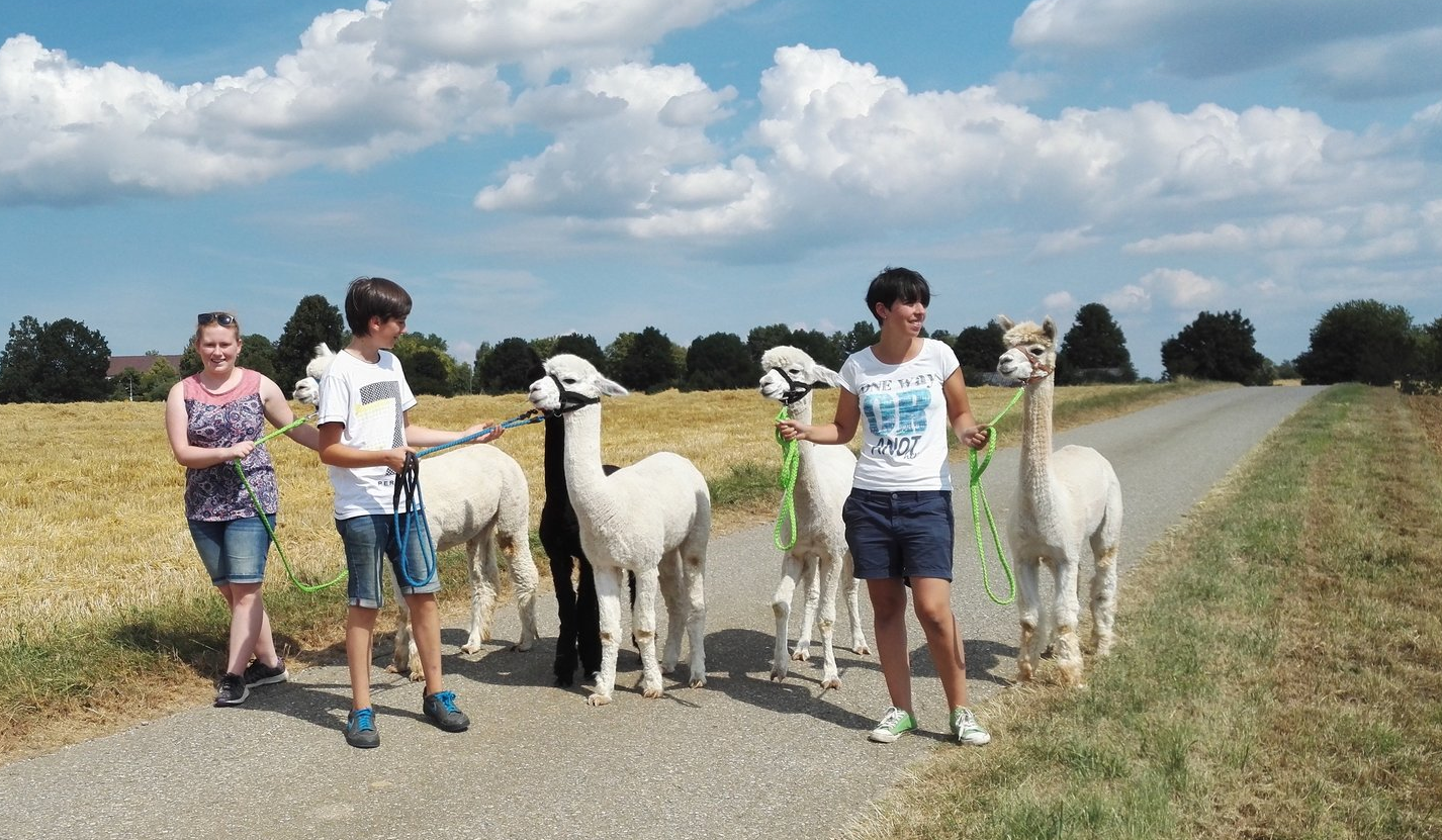 Kinder unter 10 Jahren dürfen aus Sicherheitsgründen keine Alpakas allein führen.